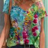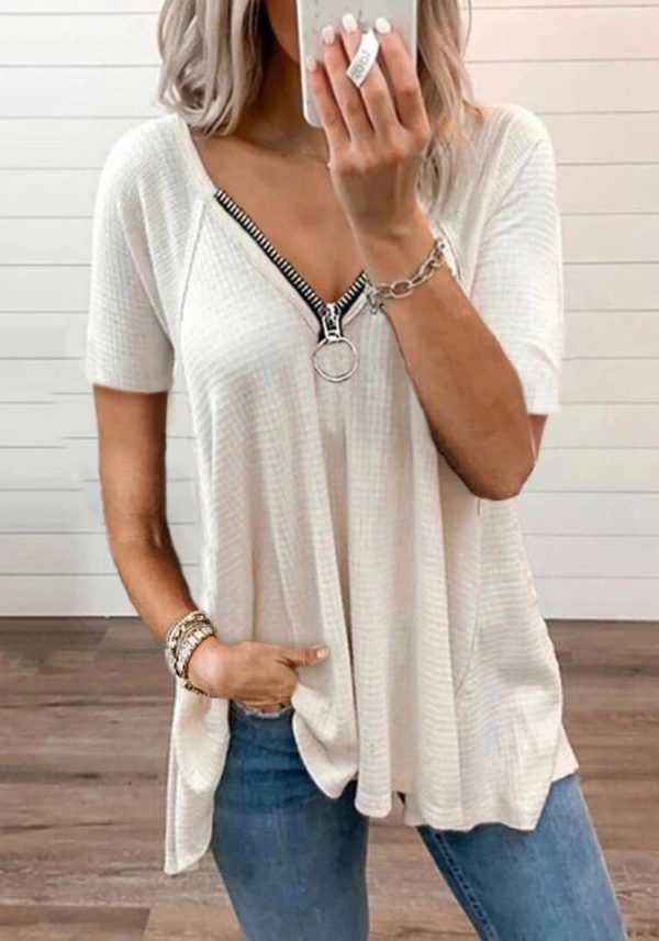 2021 summer new sexy V-neck zipper short sleeve solid color T-shirt