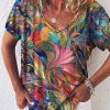 Animal Print Comfortable Loose Ladies Short Sleeve