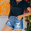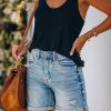 Elastic waist casual thin ripped raw edges