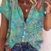 Geometric Irregular Print Comfortable Loose Ladies Short Sleeves