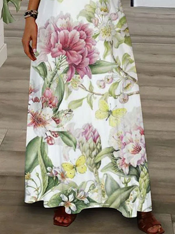 green foliage pink flowers women’s dress