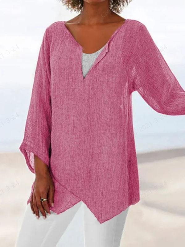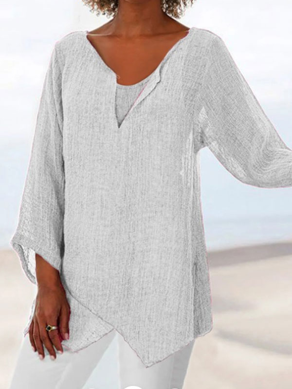 Irregular Hem Cotton Linen Ladies Top