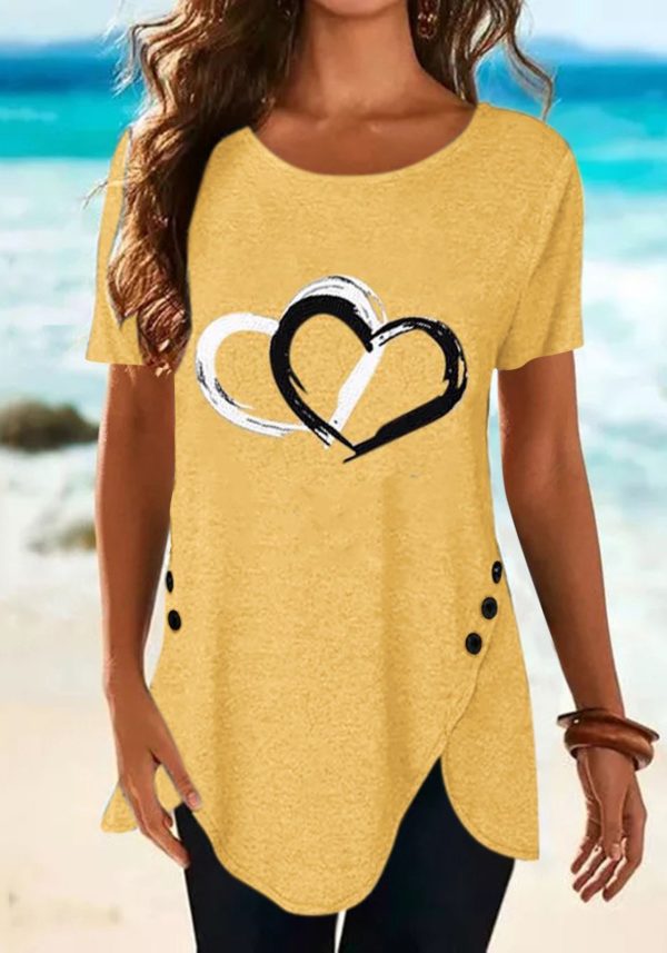 Irregular length heart shape button t-shirt