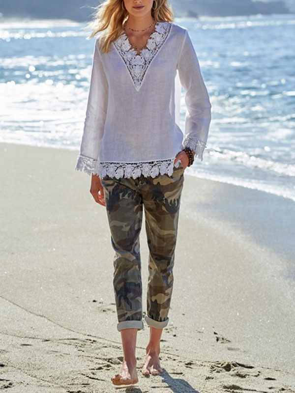 Lace Trim Shirt Seaside Ladies Top