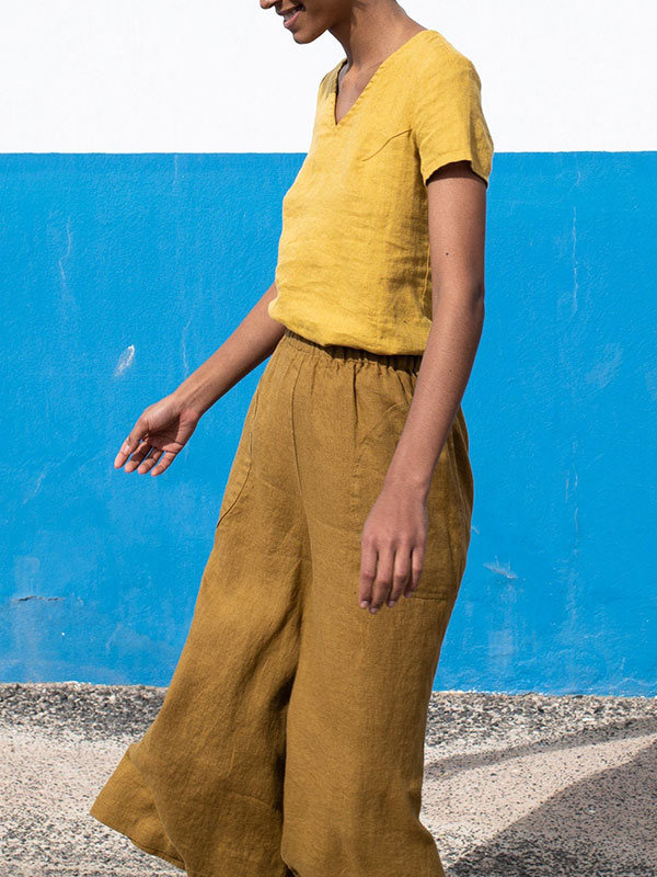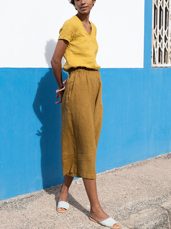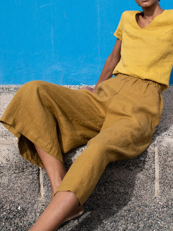 Ladies High Waist Wide Leg Cotton Linen Pants