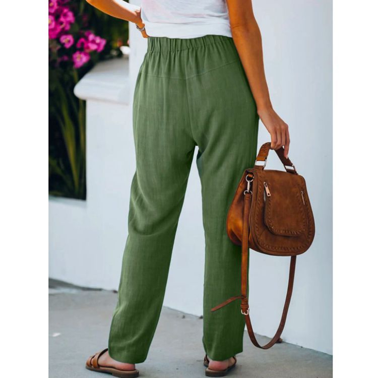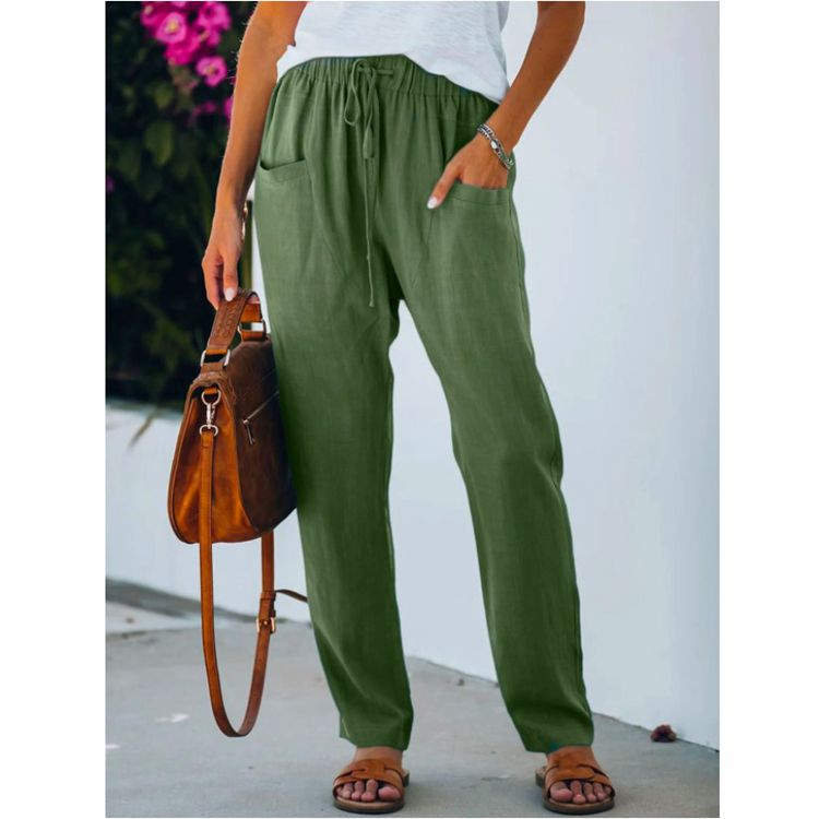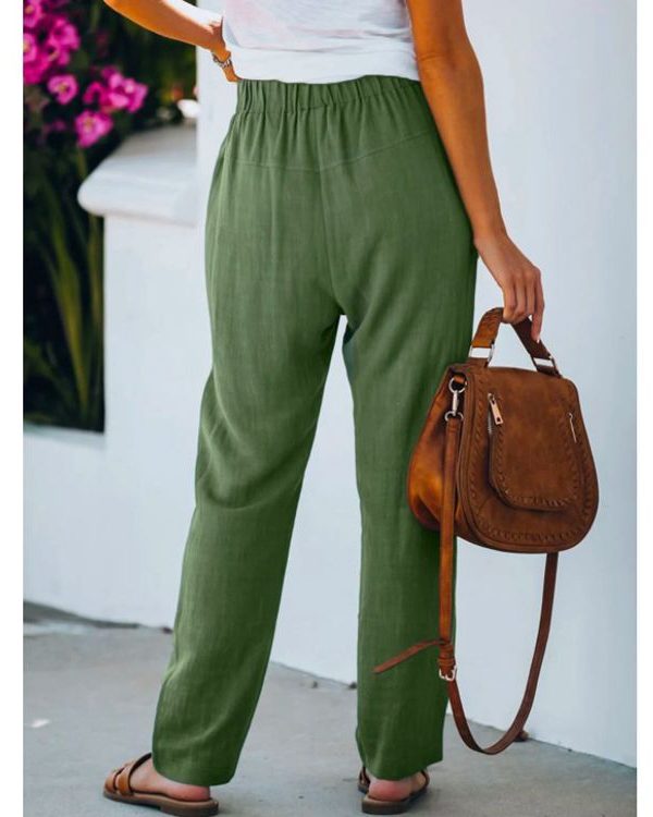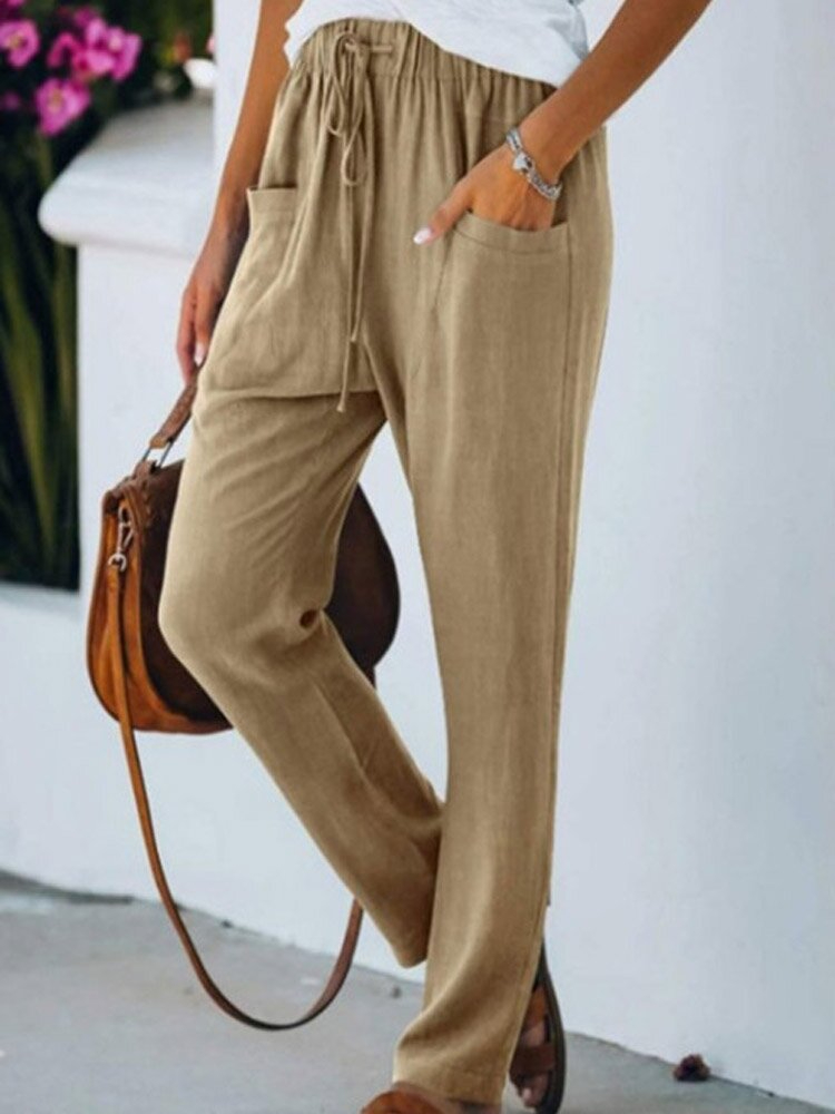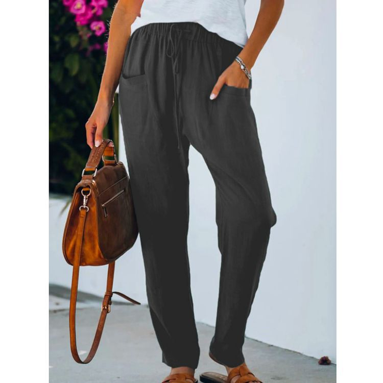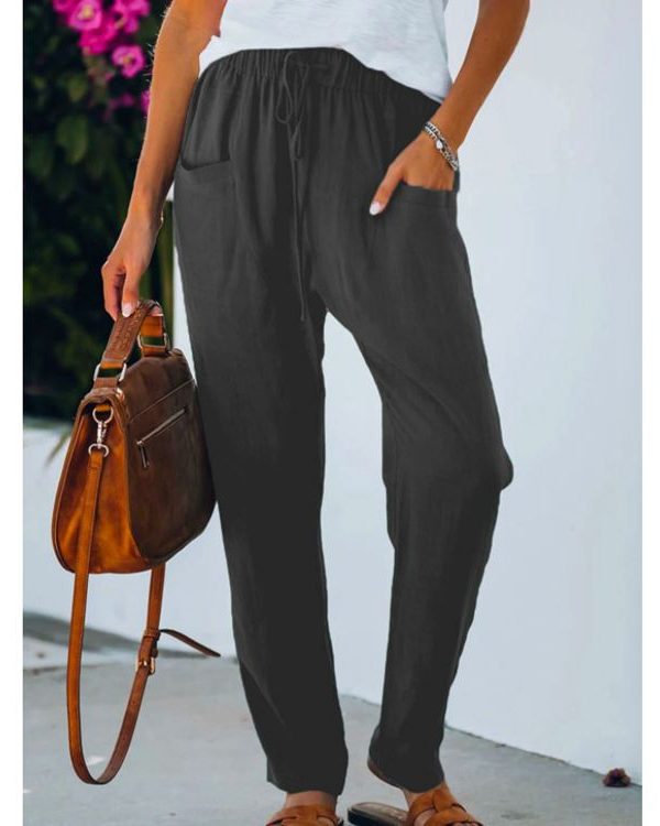 Loose Solid Color Lanyard With Pockets Slim Casual Trousers