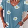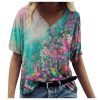 Loose V-Neck Comfortable Breathable Ladies Short Sleeves