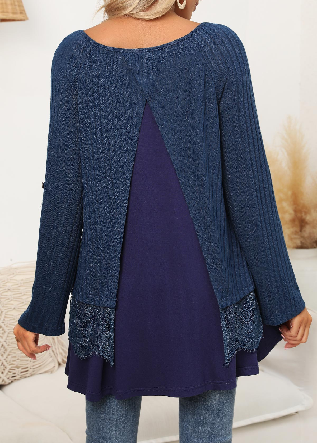 Navy Layered Long Sleeve Crewneck Sweatshirt