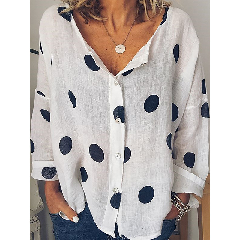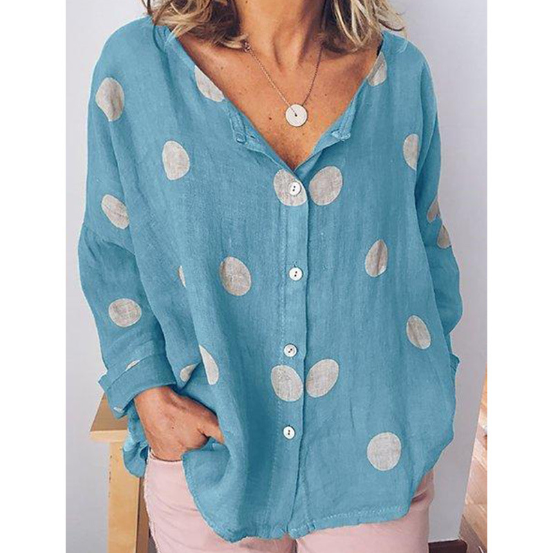 Polka Dot Long Sleeve Loose Casual Top Shirt