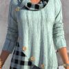 Sage Green Oblique Button Tartan Print Sweatshirt