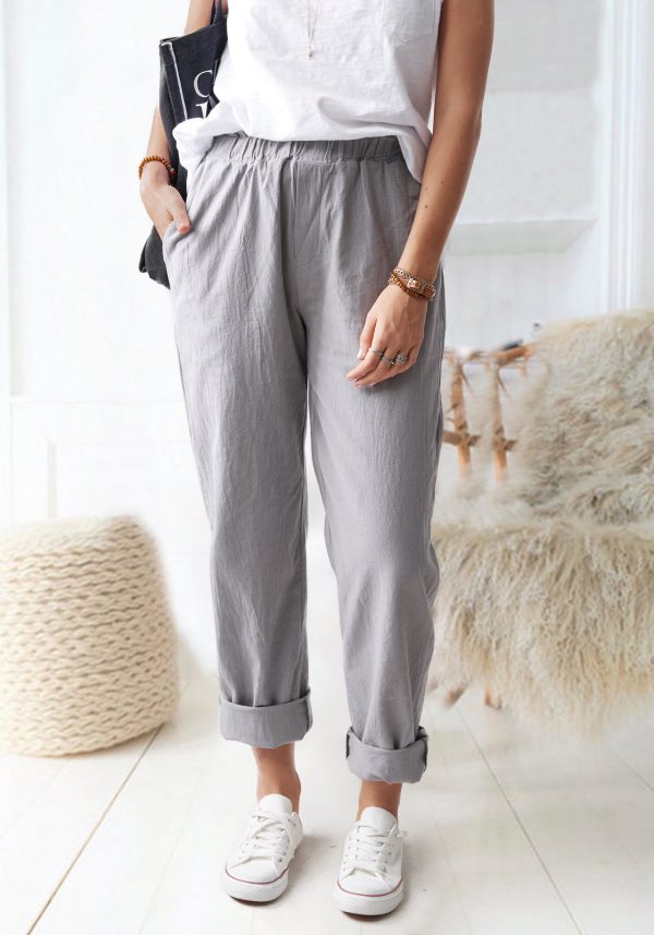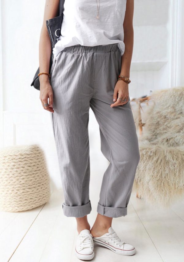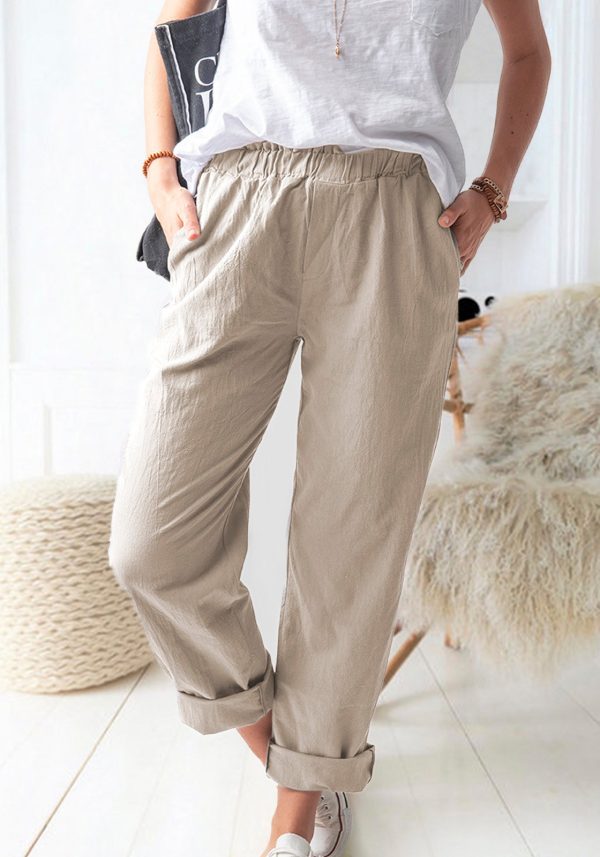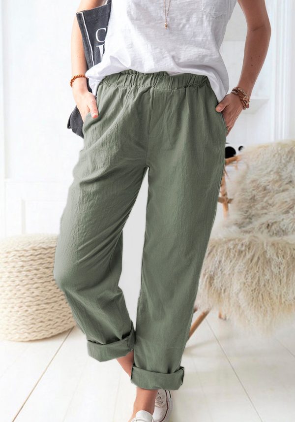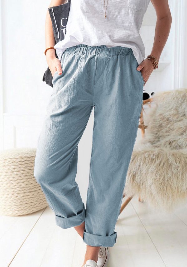 Solid Color Casual Elastic High Waist Straight Trousers