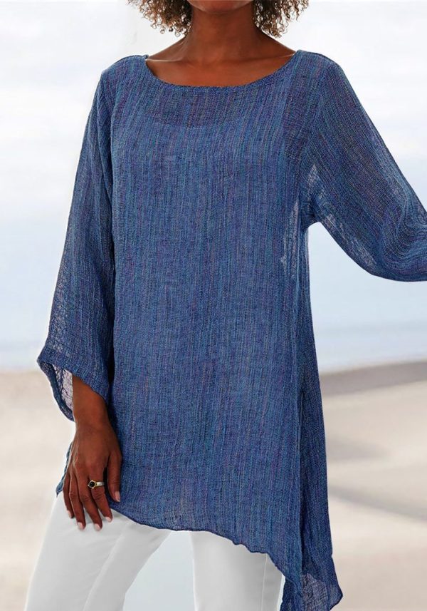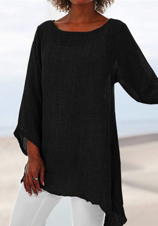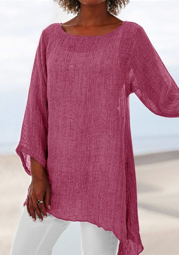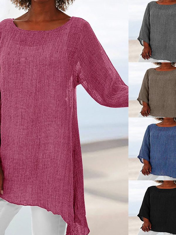 Solid Color Casual Top Irregular Long Sleeve T Blood