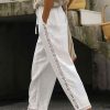 Solid Color Drawstring Casual Cotton Linen Trousers