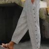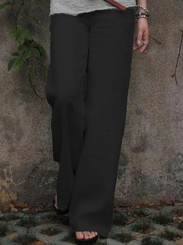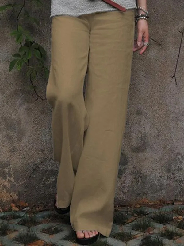 Solid Linen Cotton Wide-Leg Mid-Rise Pants