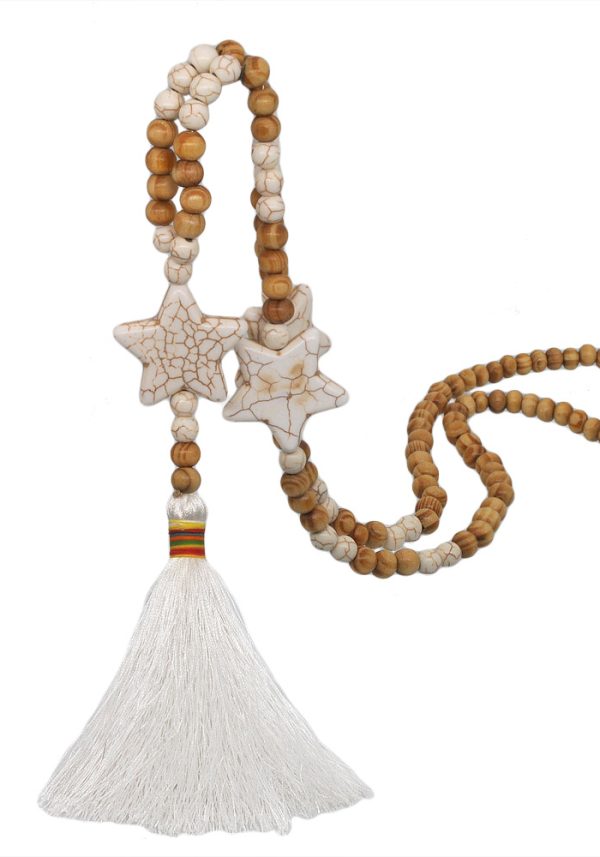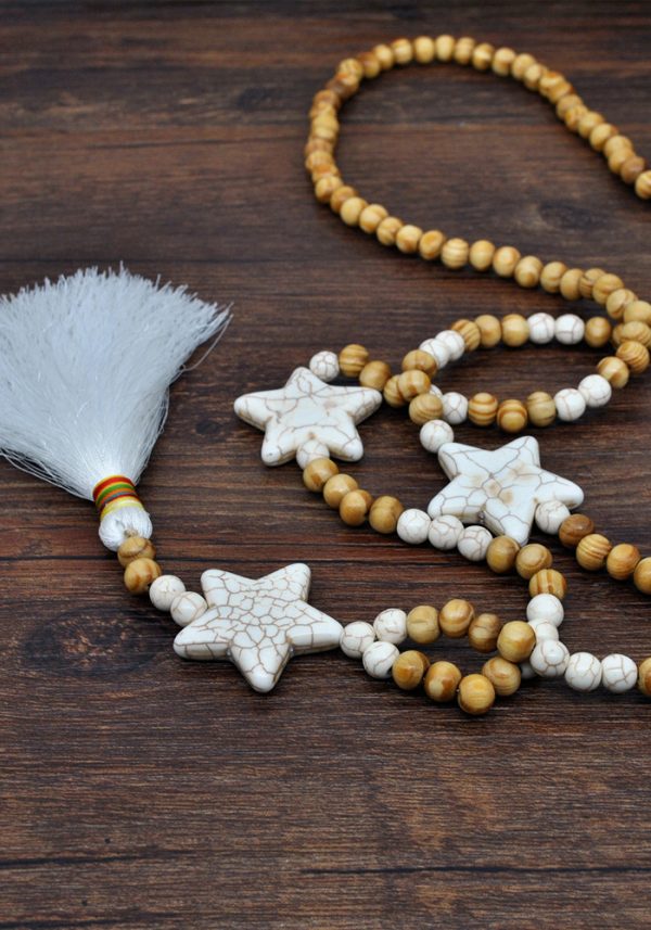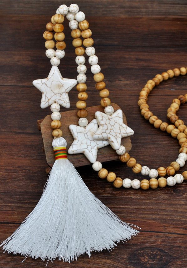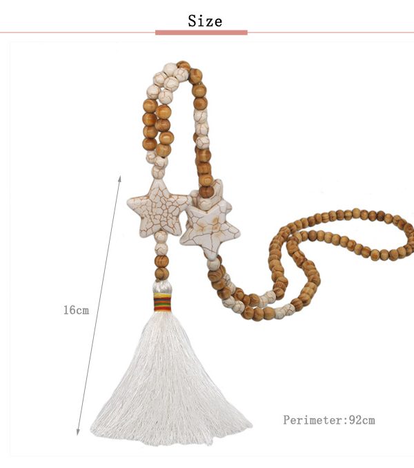 Fabric:White turquoise + wooden beads + line tassel