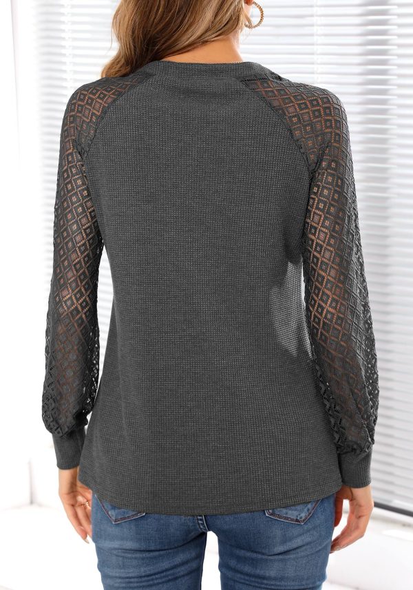 Women’s Waffle Grace Panel Long Sleeve V-Neck T-Shirt Top